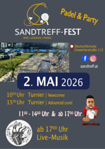 Kommt zu unserem diesjährigen SANDTREFF-FEST und genießt kühle Getränke, leckere Pizza und spannende Padel-Matches in gemütlicher Atmosphäre mit Musik! ☀️⛱️🍻🍷🍸🍹